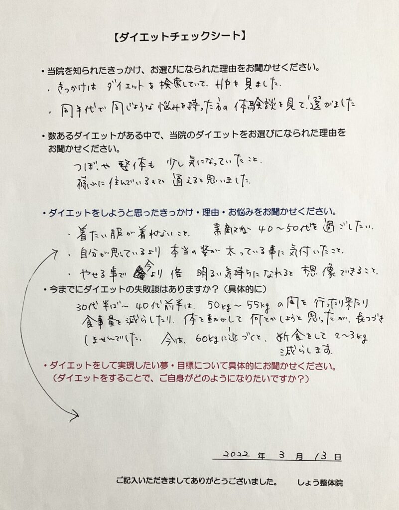 🙋♂️整体とダイエット、両方に興味があったからこそ「通いやすい」と感じていただけましたね♪