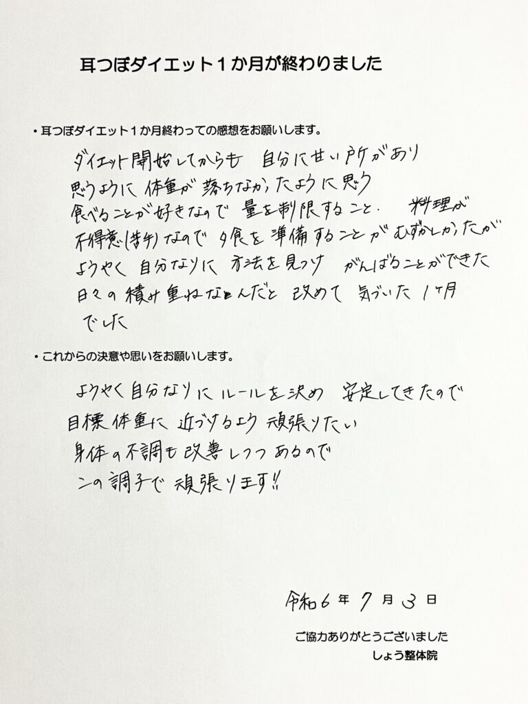 【耳つぼダイエット1か月終わっての感想をお願いします。】