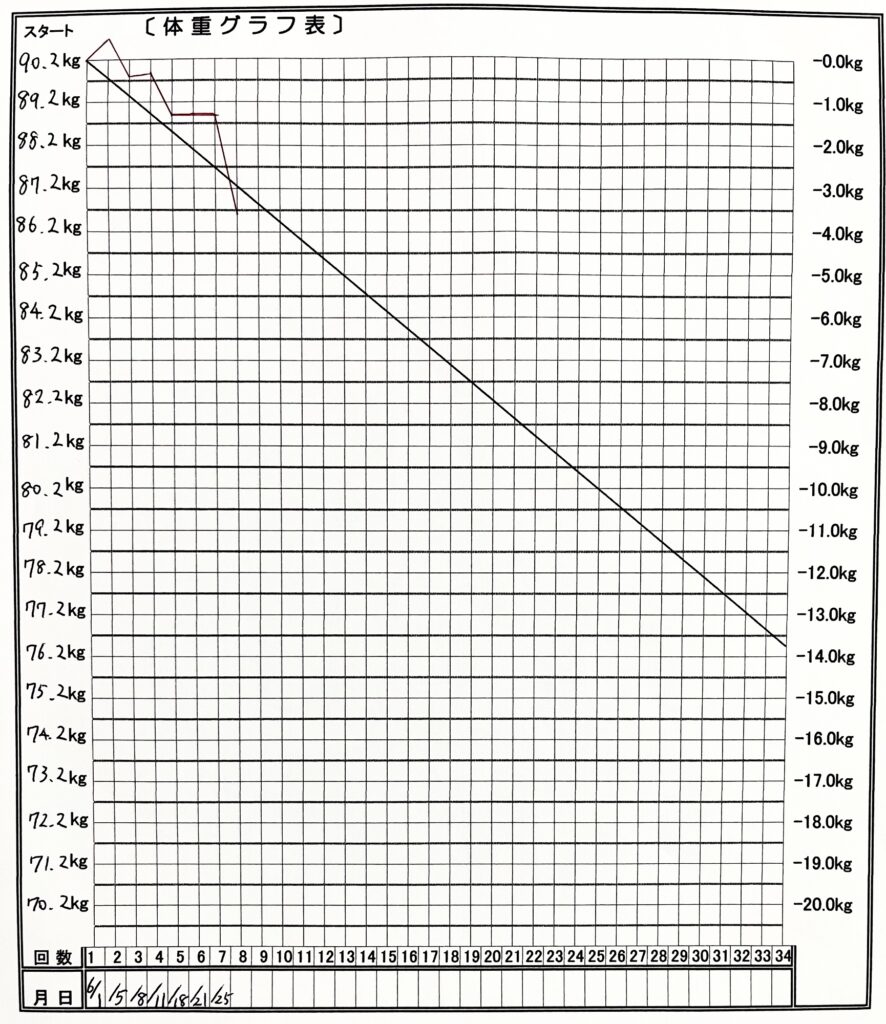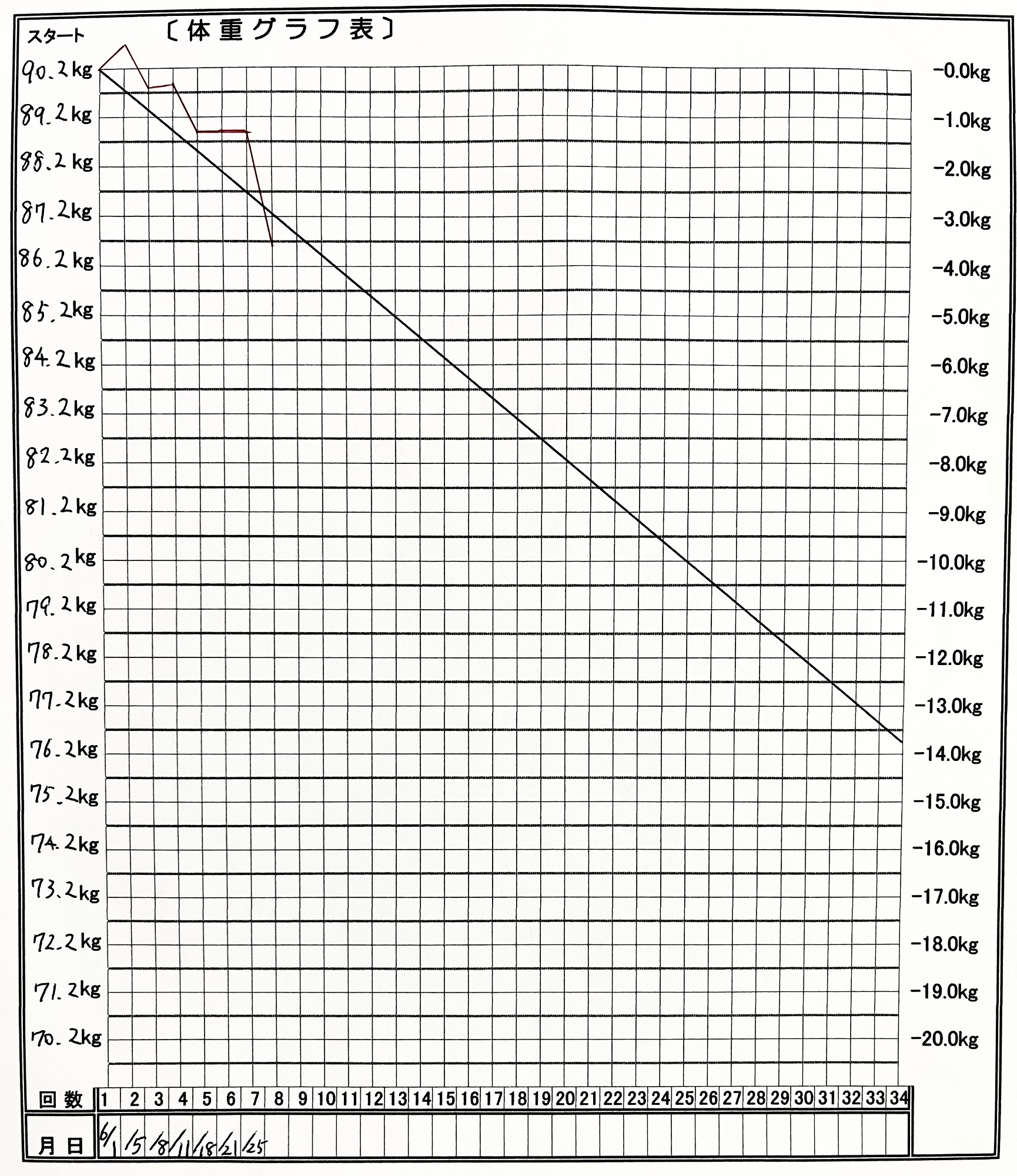 ダイエット開始してからも、自分に甘い所があり思うように体重が落ちなかったように思う。
