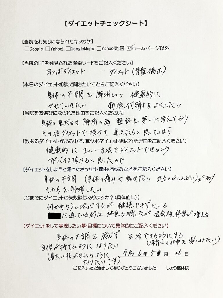 🙋♂️当院の耳つぼダイエットは、食生活、生活習慣の見直しをサポートします。