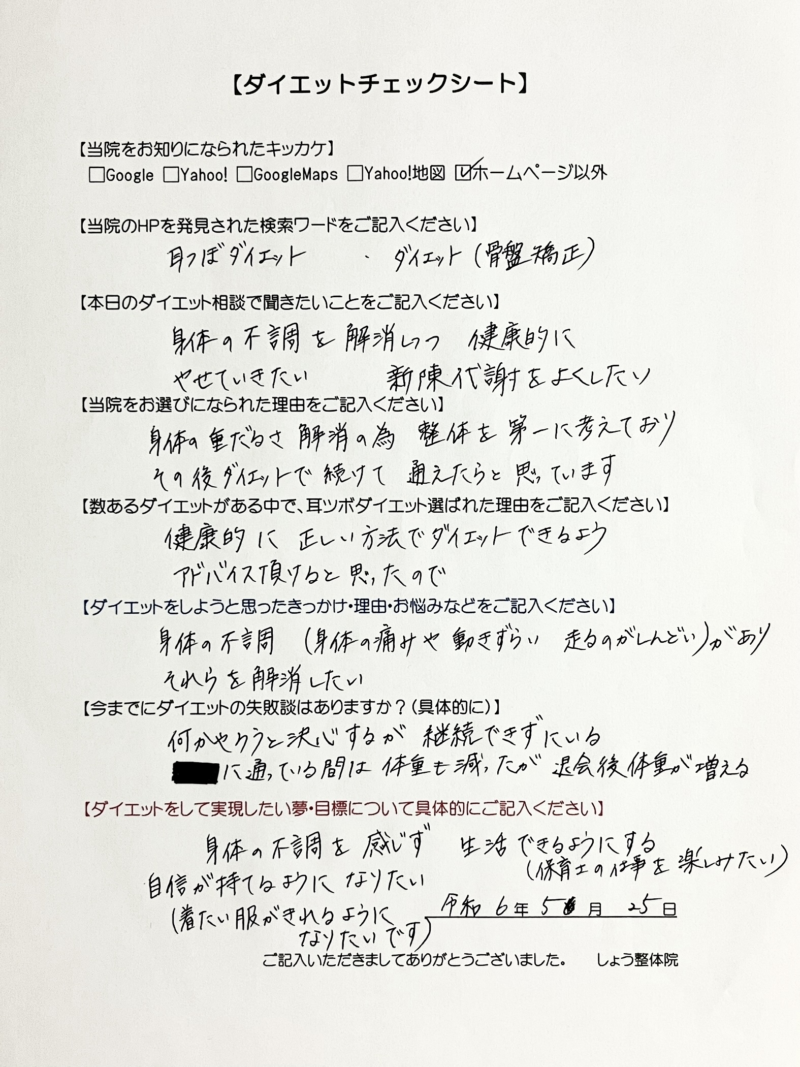 「その後、ダイエットも続けて通えたらと思っています」