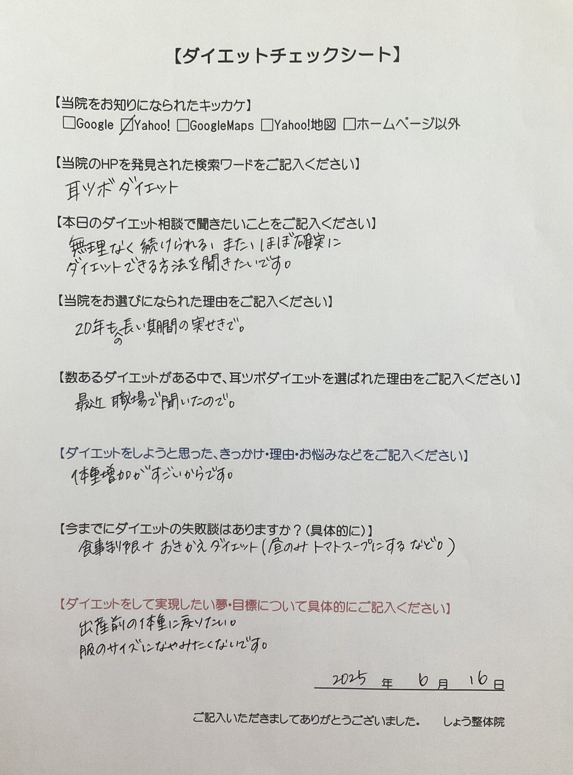 ダイエット相談内容