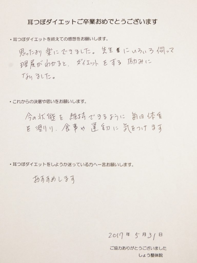 【耳つぼダイエット3か月終了】神戸市北区在住 60歳 163cm(女性)