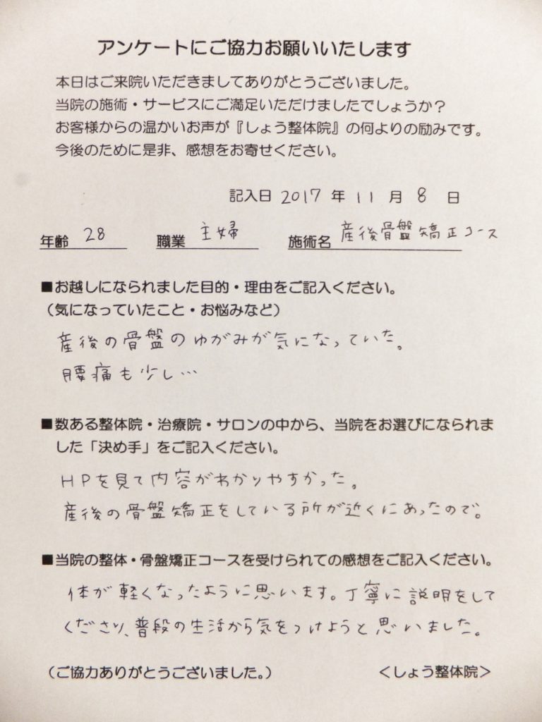 「産後の骨盤の歪みが気になって」お越しになられました。