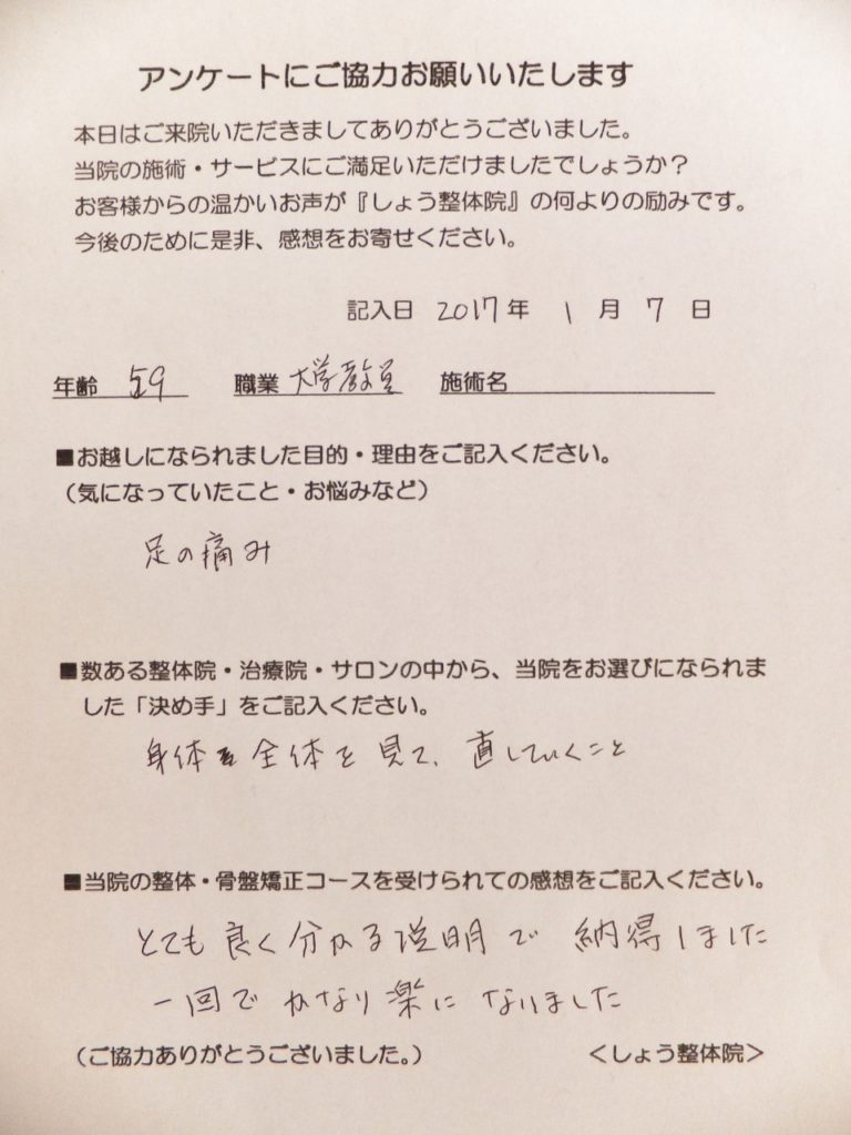 「脚の痛み、足首周辺の痛み」でお越しになられました。
