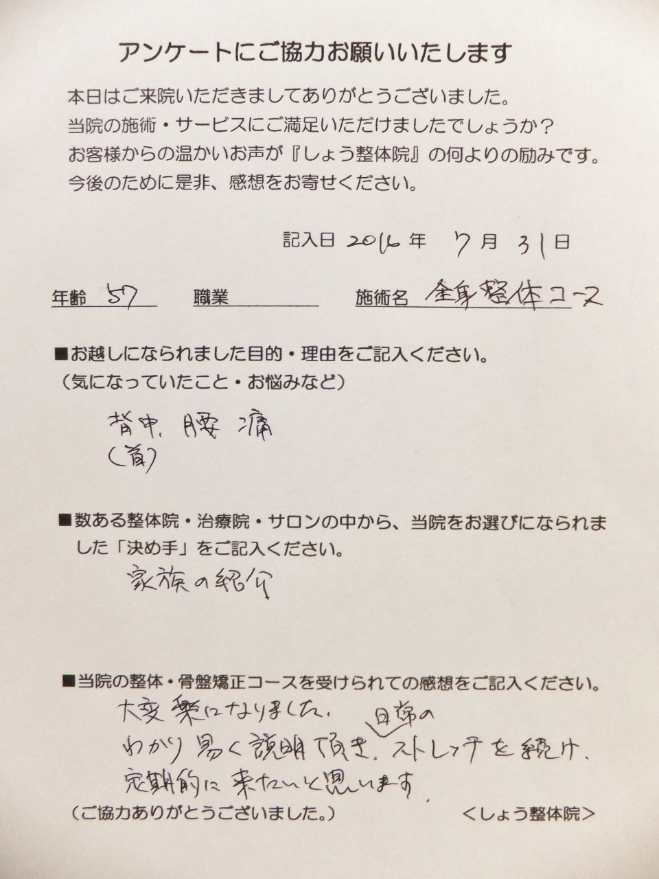 施術後は、動かしても痛みや引っ掛かりが、かなり軽減されたとのことでした。