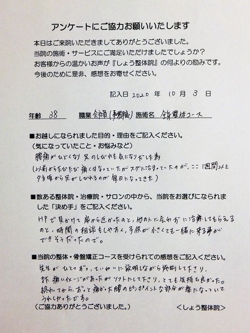 ■当院の整体・骨盤矯正コースを受けられての感想をご記入ください。