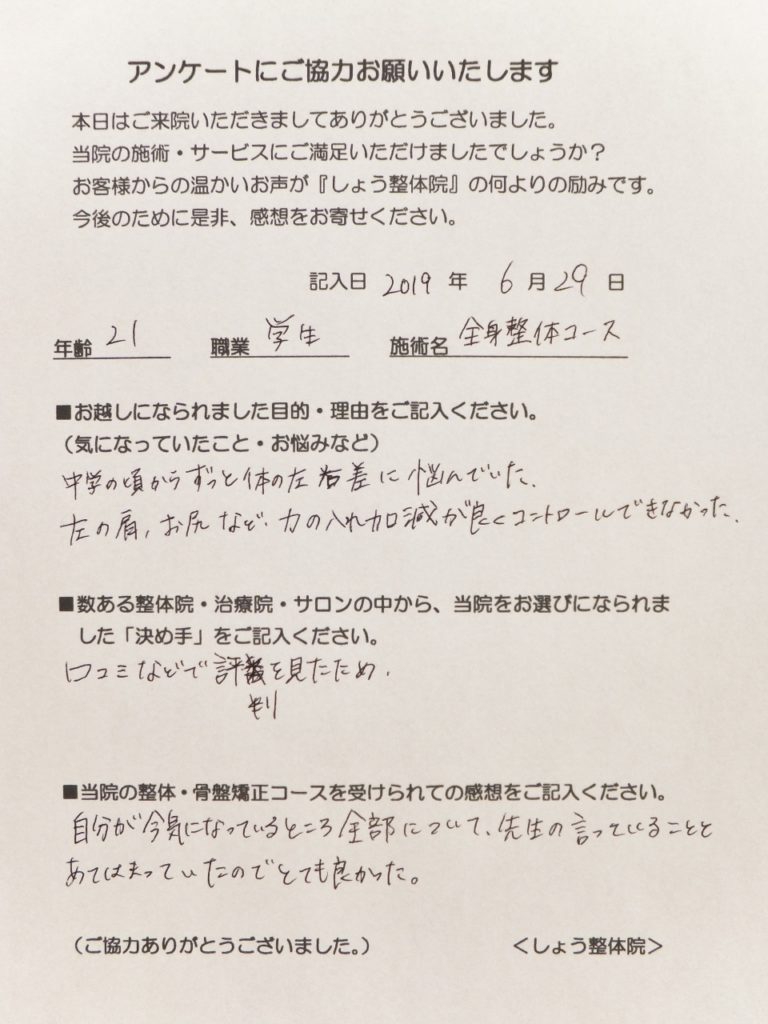 中学の頃からずっと体の左右差に悩んでいた。