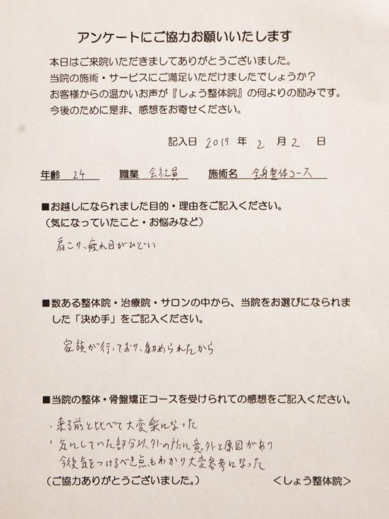 「肩こり、疲れ目」でお越しになられました。