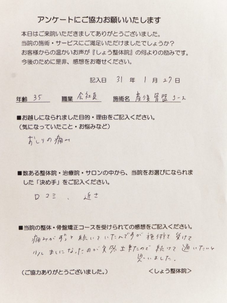 ■当院の整体・骨盤矯正コースを受けられての感想をご記入ください。