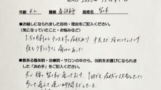 腰の痛みや重だるさでご来院。臀部の筋肉の凝りを調整し、動作時の痛みが軽減。座り心地も改善し、セルフケアと合わせて楽な状態を長持ちさせていきます。
